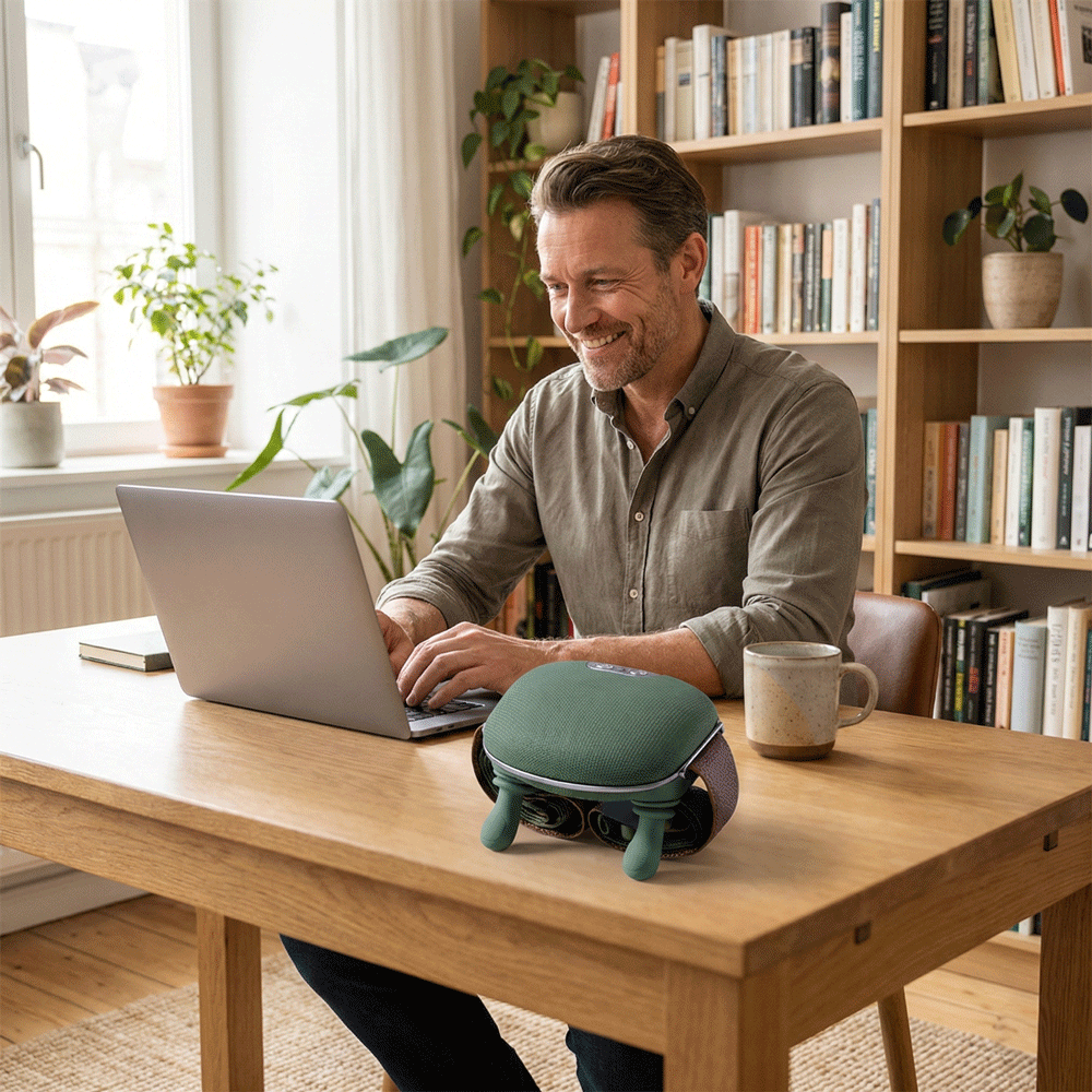 We know relaxation requires silence. Unlike loud percussion guns that sound like power tools, our device uses a Whisper-Quiet Brushless Motor (<45dB). It is silent enough to use in a quiet office, while watching TV, or next to a sleeping partner without disturbing anyone.
