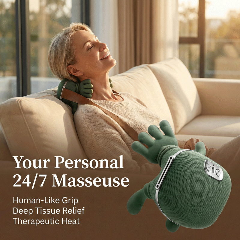 While traditional massagers vibrate without fixing the root cause, the Bionic Hand™ mimics the precise Grip & Knead motion of a professional therapist. Enhanced by heat, it physically breaks down deep muscle knots that others simply can't reach.